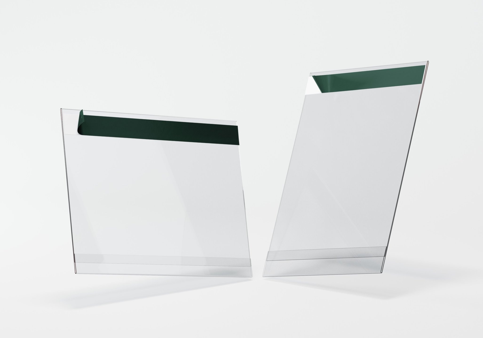 Selbstklebende Kunststofftasche mit zwei Knicken aus dünnem Hartplastik. Die Tasche ist zum Einstecken von Etiketten, Prospekten, Preisschildern oder Aufklebern bestimmt. Die Taschen werden aus Hart-PVC- oder PET-Folie des deutschen Herstellers Klöckner Pentaplast mit glänzender oder matter (antireflektierender) Oberfläche hergestellt. Die Stärke des verwendeten Materials beträgt je nach Größe 0,4 - 0,7 mm. Die matte Oberfläche ist kratzfester. Die Taschen sind mit dem weißen, doppelseitig klebenden Schaumstoffband IFG2900 abgedeckt. Das IFG2900-Klebeband kann höheren Belastungen standhalten und ist für dauerhafte Anwendungen auf den meisten Oberflächen geeignet. Das Band folgt der Oberfläche gut und ist auch für strukturierte, nicht glatte Oberflächen geeignet. Auf Wunsch können wir die Taschen in einem individuellen Design, in einem anderen Material oder mit jeder Art von Klebeband herstellen. Die Tasche ist standardmäßig mit einem Klebeband ausgestattet. Wenn Sie zwei Klebebänder benötigen, vermerken Sie dies bitte in den Anmerkungen bei der Bestellung oder in der E-Mail. Sie kaufen beim Hersteller