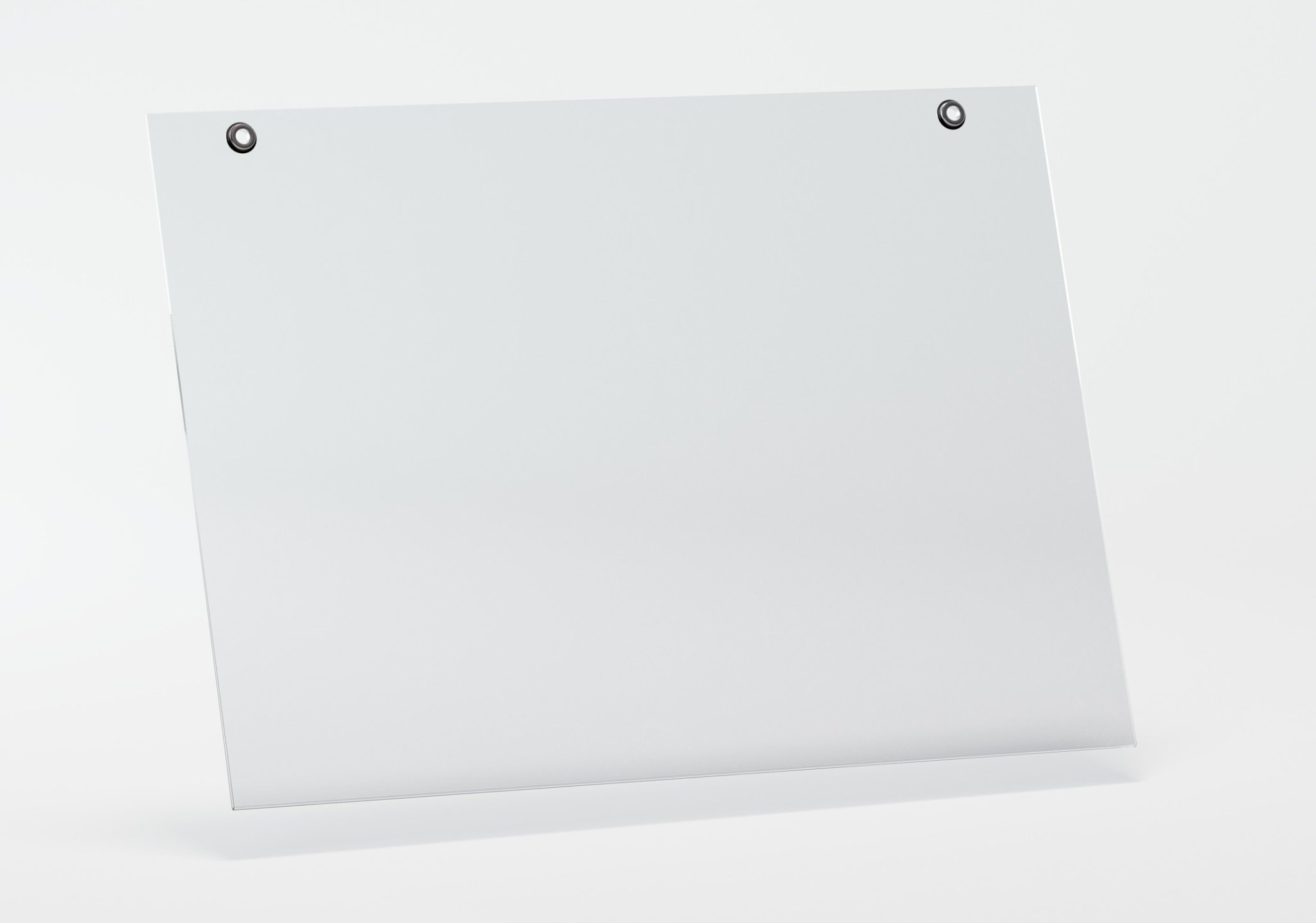 Hängende Kunststofftasche aus dünnem Hartplastik mit vernieteten Metallösen. Die Tasche ist zum Einstecken von Etiketten, Prospekten, Preisschildern oder Aufklebern bestimmt. Kann zum Aufhängen im Raum verwendet werden, z.B. an Seilen mit Haken. Die Taschen werden aus Hart-PVC- oder PET-Folie des deutschen Herstellers Klöckner Pentaplast mit glänzender oder matter (antireflektierender) Oberfläche hergestellt. Die Stärke des verwendeten Materials beträgt je nach Größe 0,5 - 0,7 mm. Die matte Oberfläche ist kratzfester. Auf Wunsch können wir die Taschen in individuellen Designs, in anderen Abmessungen oder aus anderen Materialien herstellen. Sie kaufen beim Hersteller